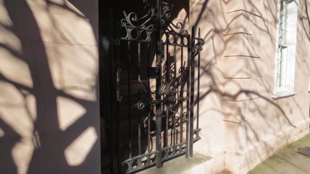 Antique wrought iron gate with sunlight view. It was morning, not many people were out and about. Especially since it was February. In Spring and Summer it is packed in Charleston.